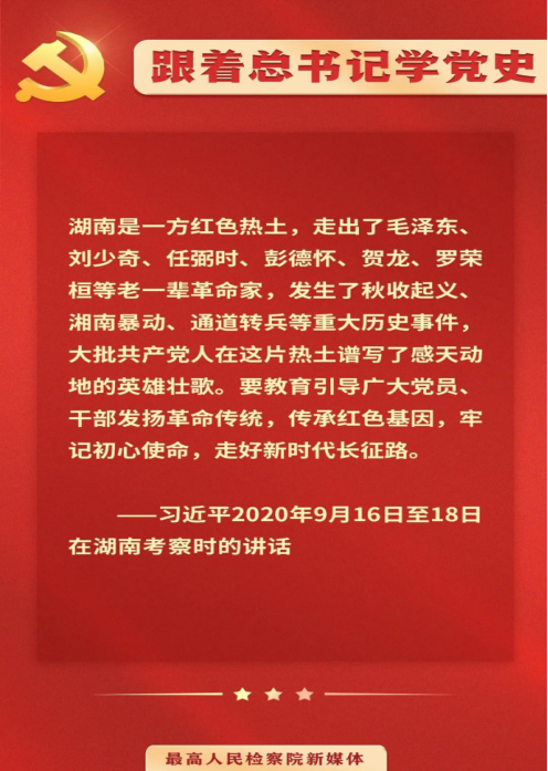 为庆祝中国共产党百年华诞,最高检新媒体开设“跟着总书记学党史”专栏,号召全国各级检察机关积极学党史、悟思想、办实事、开新局。
